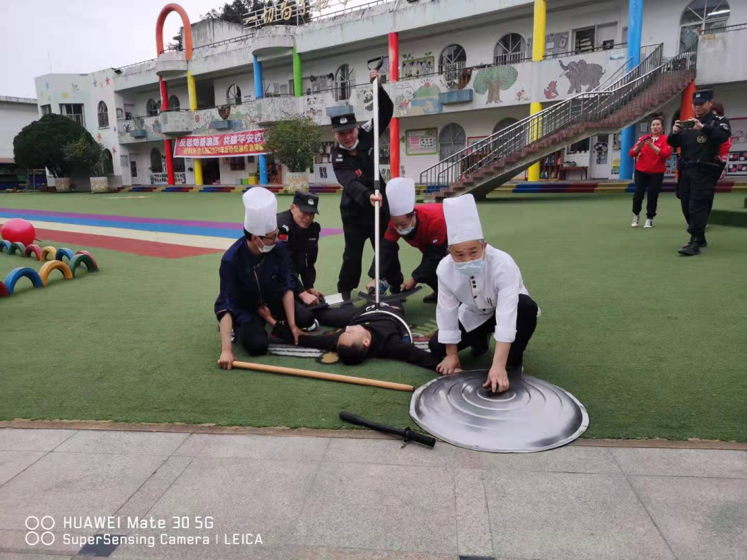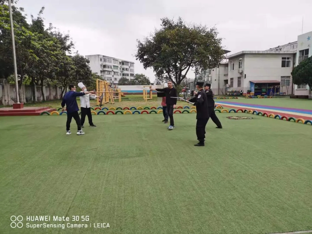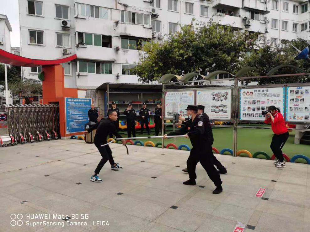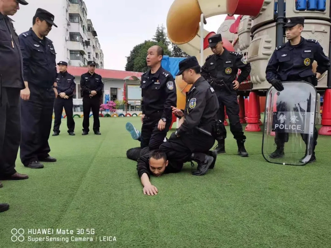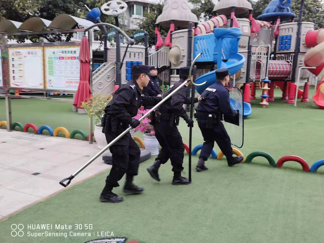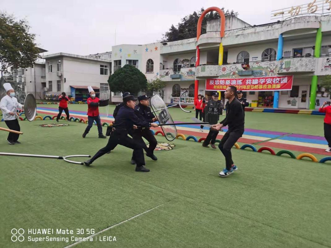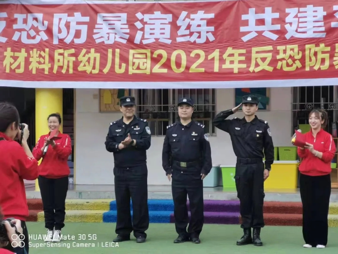 为进一步加强校园安全工作,提高幼儿园安全保护的防范意识, 以及国内外校园砍伤、抢劫等安全事故频频发生,一次次的意外给我们敲响了警钟,我公司特勤项目部高度重视安全工作,把校园安全、师幼安全作为幼儿园工作的重中之重,为了提高对恐怖事件的合理处置、自护自救及有效逃生避险的能力,最大限度的减少因突发恐怖暴力事件对师幼造成的人员伤害,实现“平安校园”的工作目标。2021年3月30日下午15点30分至16点00分早操及户外体育活动的时间,在华丰派出所民警及幼儿园保安的协助下,材料所幼儿园全体教职工及所有幼儿进行了一次反恐防暴实地演练活动的开展。