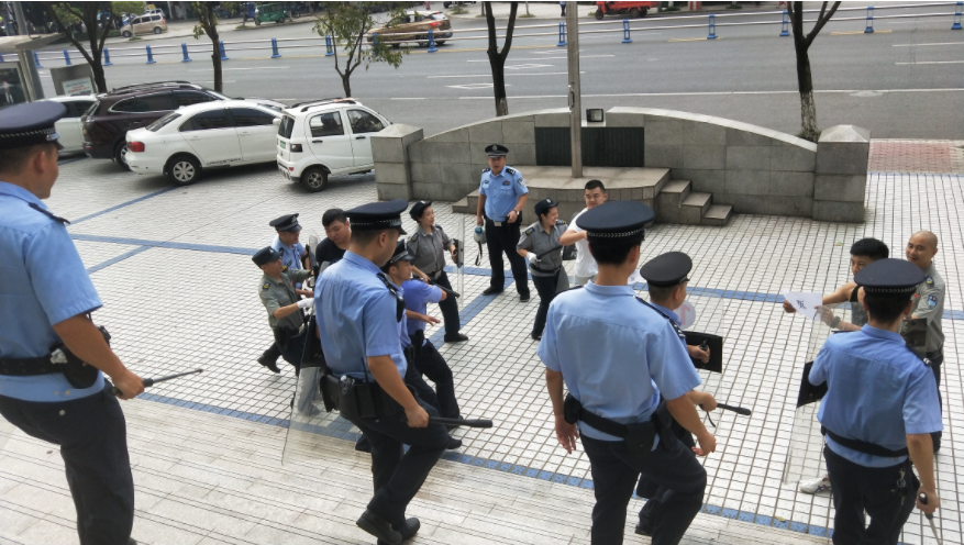 为确保客户单位财产及人身安全,进一步提高保安人员应急处置能力,2018年8月31日上午,江油为民安防公司人防物业分公司政府机关项目部联合法院举行上访闹事、法厅犯人逃跑抓捕、突发疾病救治等实战演练。公司法院保安人员、法院法警共同参与了演练。