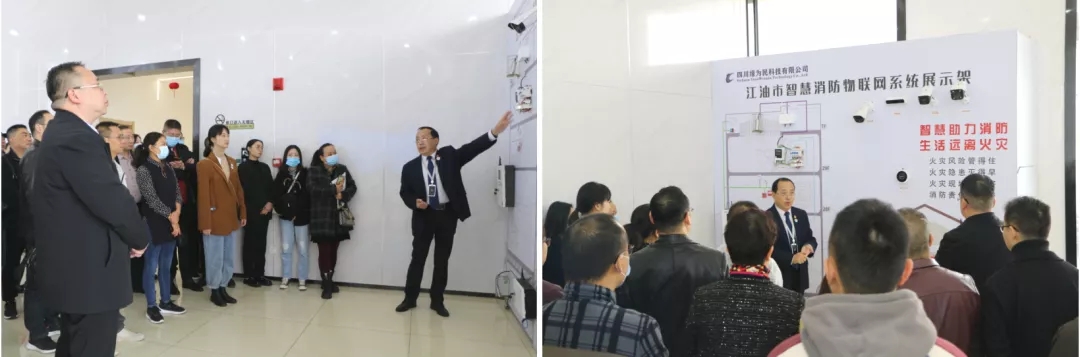 会议开始前,为民集团董事长刘光荣带领参会人员参观为民安防公司,热情地介绍了公司十年发展历程、党建引领的成果和智慧安防智慧消防一体化平台以及诗城义警志愿者平台等。来访嘉宾纷纷拍手称赞。