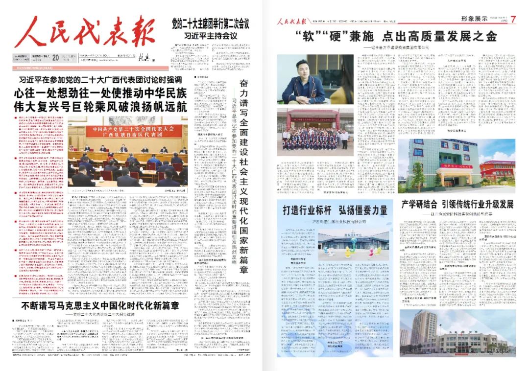 2022年10月20日,在举世瞩目的中国共产党第二十次全国代表大会召开之际,由老一辈无产阶级革命家彭真同志题写报名的《人民代表报》在显著版面刊发了题为《 产学研结合 引领传统行业升级发展》的专题报道,详细展示四川为民公司实现科技转型的优秀事迹。