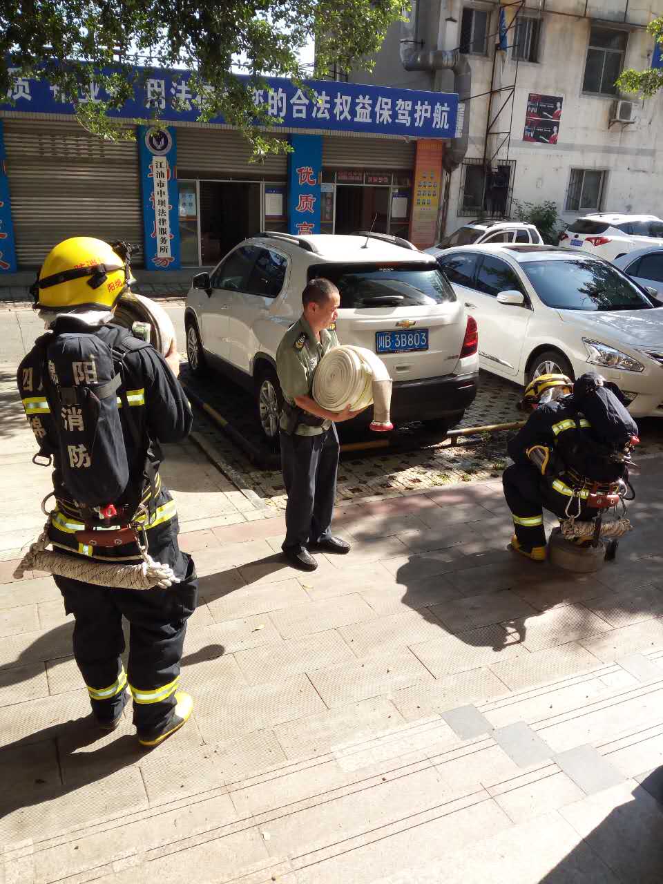 7月6日下午,江油市人民法院和消防中队联合组织进行消防检查和消防应急演练。